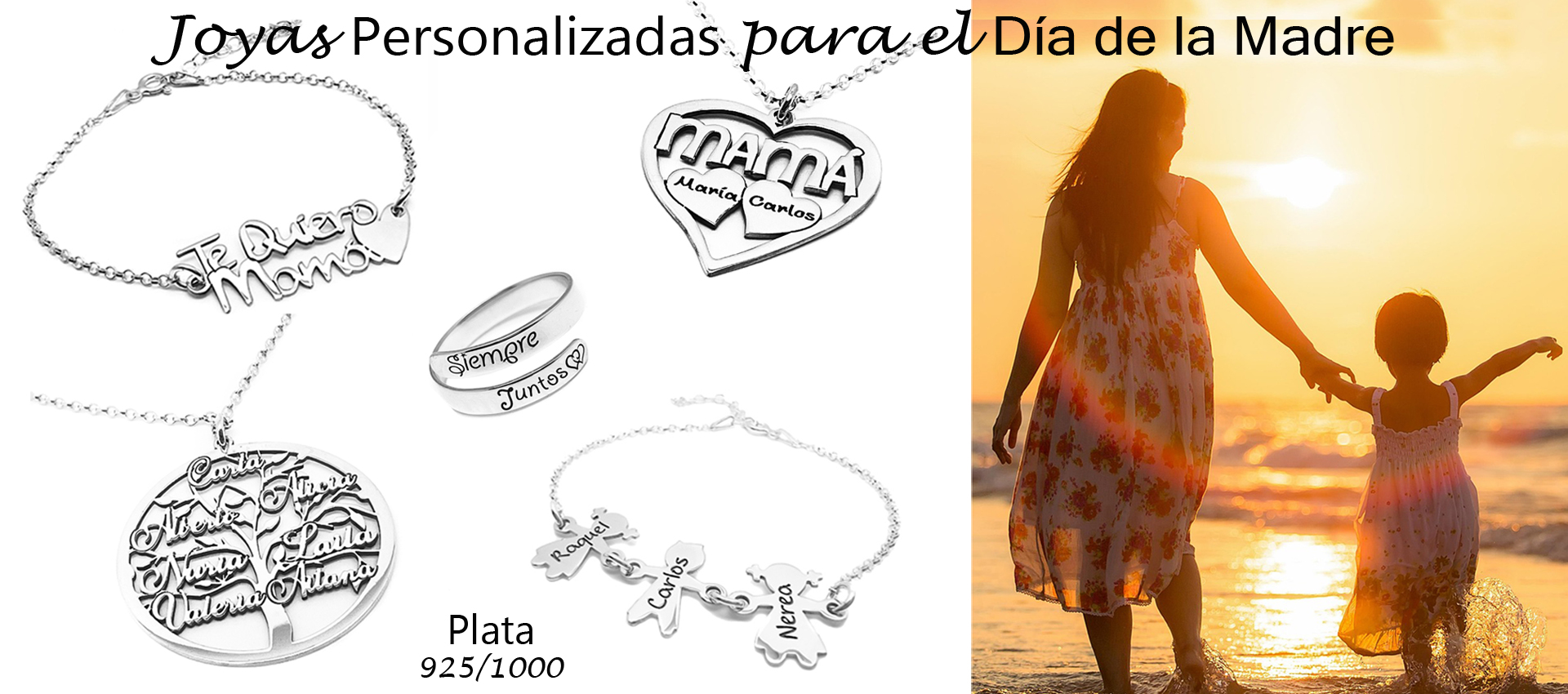 ANILLO PARA MUJER CON NOMBRES PERSONALIZADOS – AJUSTABLE, PLATA 925/1000 – REGALO DÍA DE LA MADRE MODELO CONTORNO