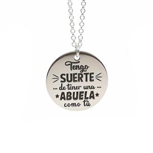 COLGANTE MEDALLA MADRE, ABUELA, AMIGA PERSONALIZABLE FABRICADO EN PLATA 925/1000. MODELO TENGO LA SUERTE