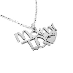 COLLAR MAMÁ PERSONALIZADO EN PLATA 925/1000. MODELO TQ + CORAZÓN