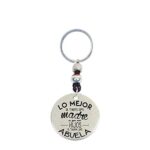 Llavero Día de la Madre Personalizado en Zamak Baño Plata y Cuero – Modelo Lo Mejor de Tenerte Mamá–Abuela