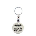 Llavero Día de la Madre Personalizado en Zamak Baño Plata y Cuero – Modelo Mamá Eres la Mejor