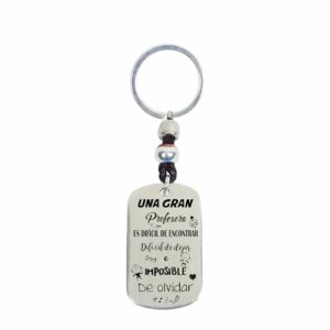 Llavero Profesora Personalizado en Zamak y Cuero – Modelo “Profe”