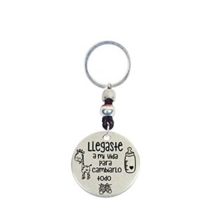 Llavero Día de la Madre Personalizado en Zamak Baño Plata y Cuero – Modelo Llegaste a Mi Vida (Jirafa)