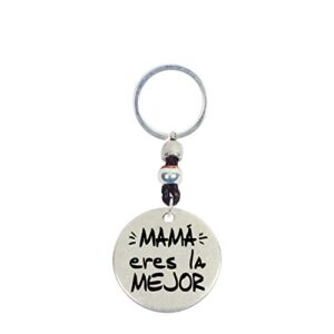 Llavero Día de la Madre Personalizado en Zamak Baño Plata y Cuero – Modelo Mamá Eres la Mejor