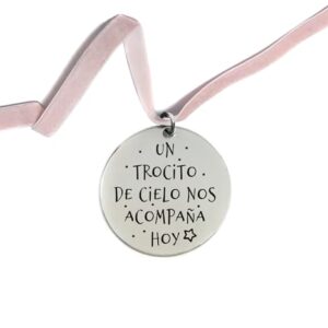 Medalla para ramo de novia en plata 925 – Personalizable – Modelo Un Trocito de Cielo Nos Acompaña Hoy 1
