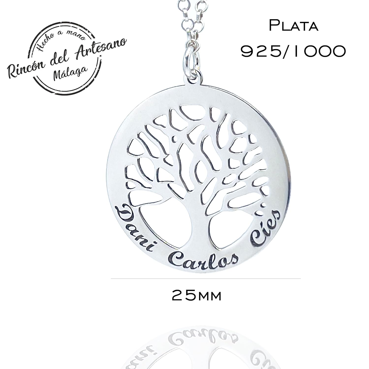 El modelo G25MM (25 mm) es la opción compacta del Árbol de la Vida: discreto, elegante y cargado de significado para llevar siempre cerca.