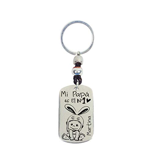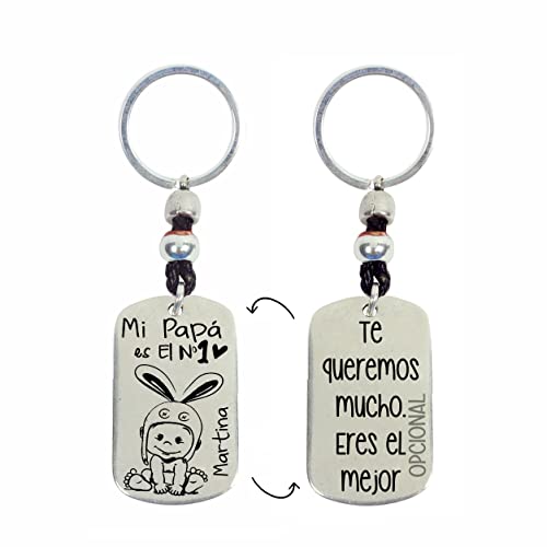 LLAVERO DÍA DEL PADRE PERSONALIZADO EN ZAMAK BAÑO PLATA Y CUERO MODELO PAPA N.º 1 CONEJO